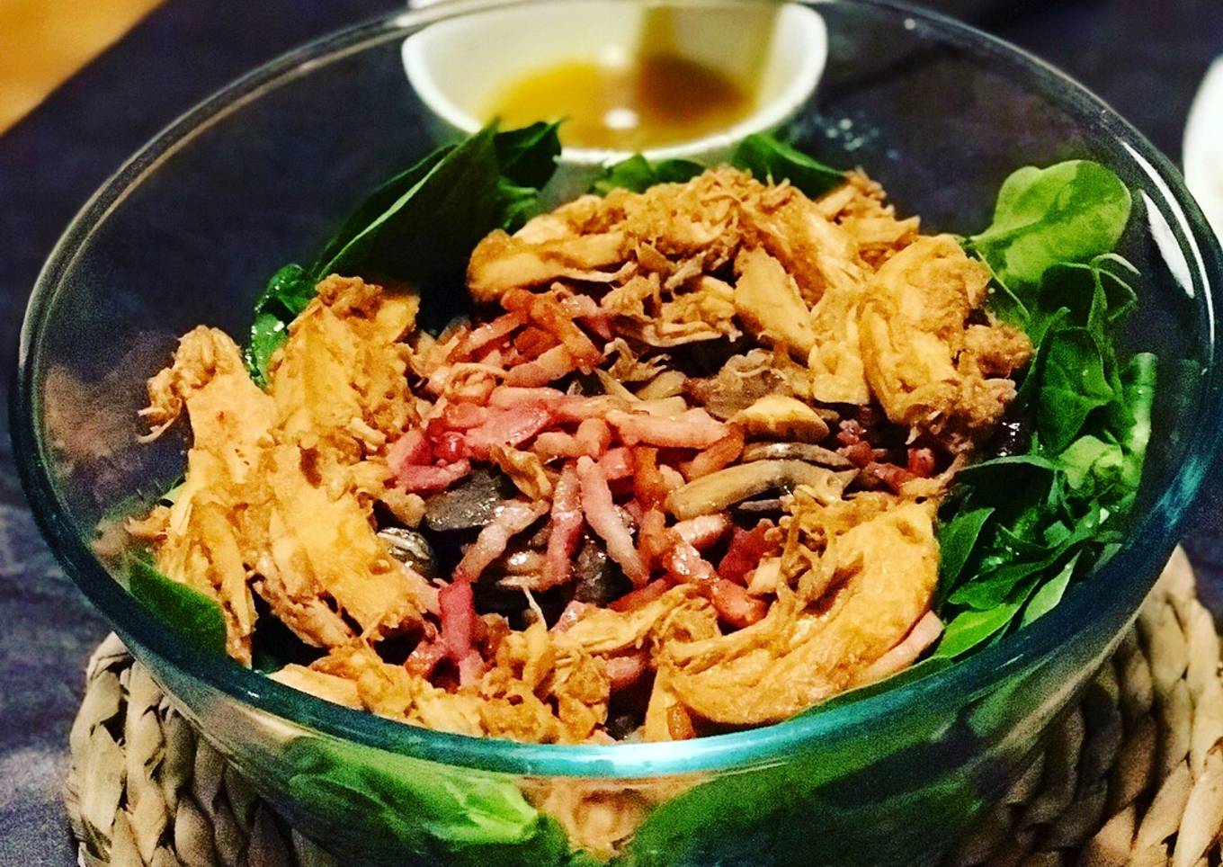 - Monta tu ensalada y a comer. Aliña al gusto y remueve bien para que el aliño se reparta por todas las hojas de espinacas. Te encantará 😍😍