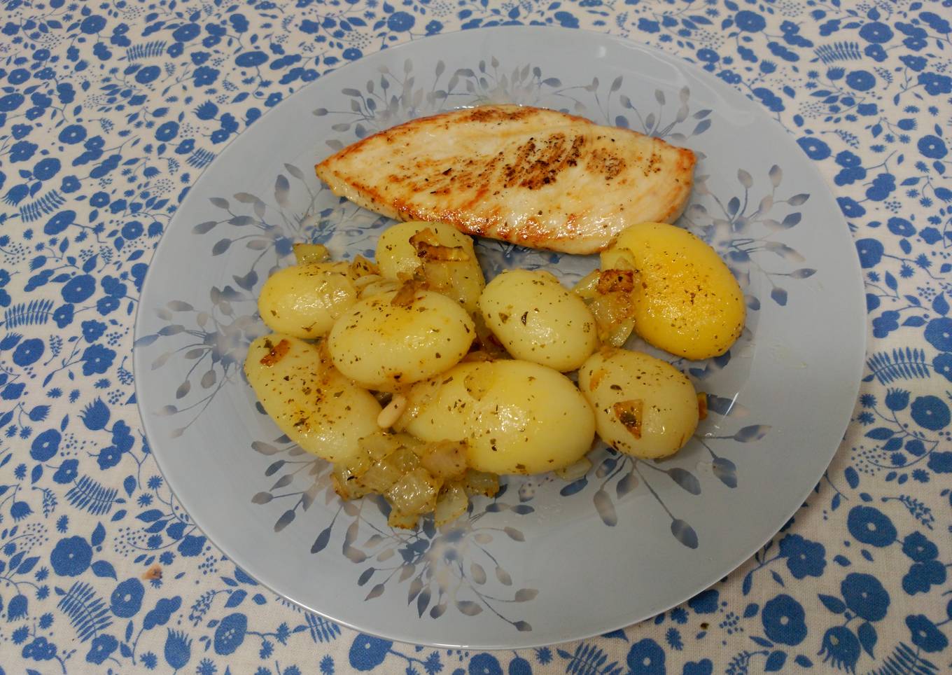 - Se hace la pechuga una vez fileteada en la plancha, con un poco de aceite sal y pimienta. Se reserva.