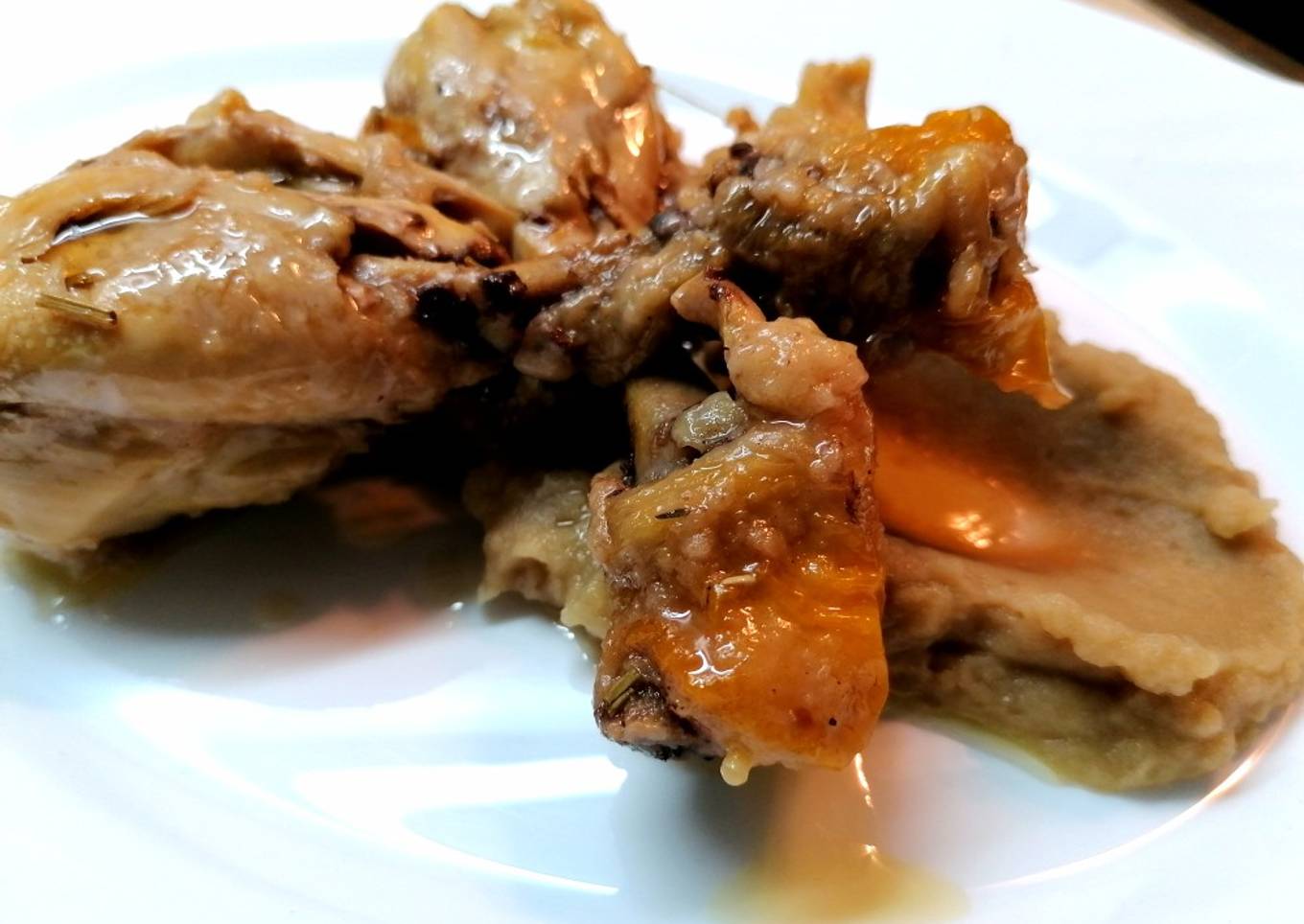 Pollo escabechado con parmentier de anchoas