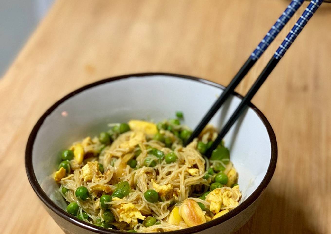 Fideos de arroz con pollo al curry en 20 min🥡⏰