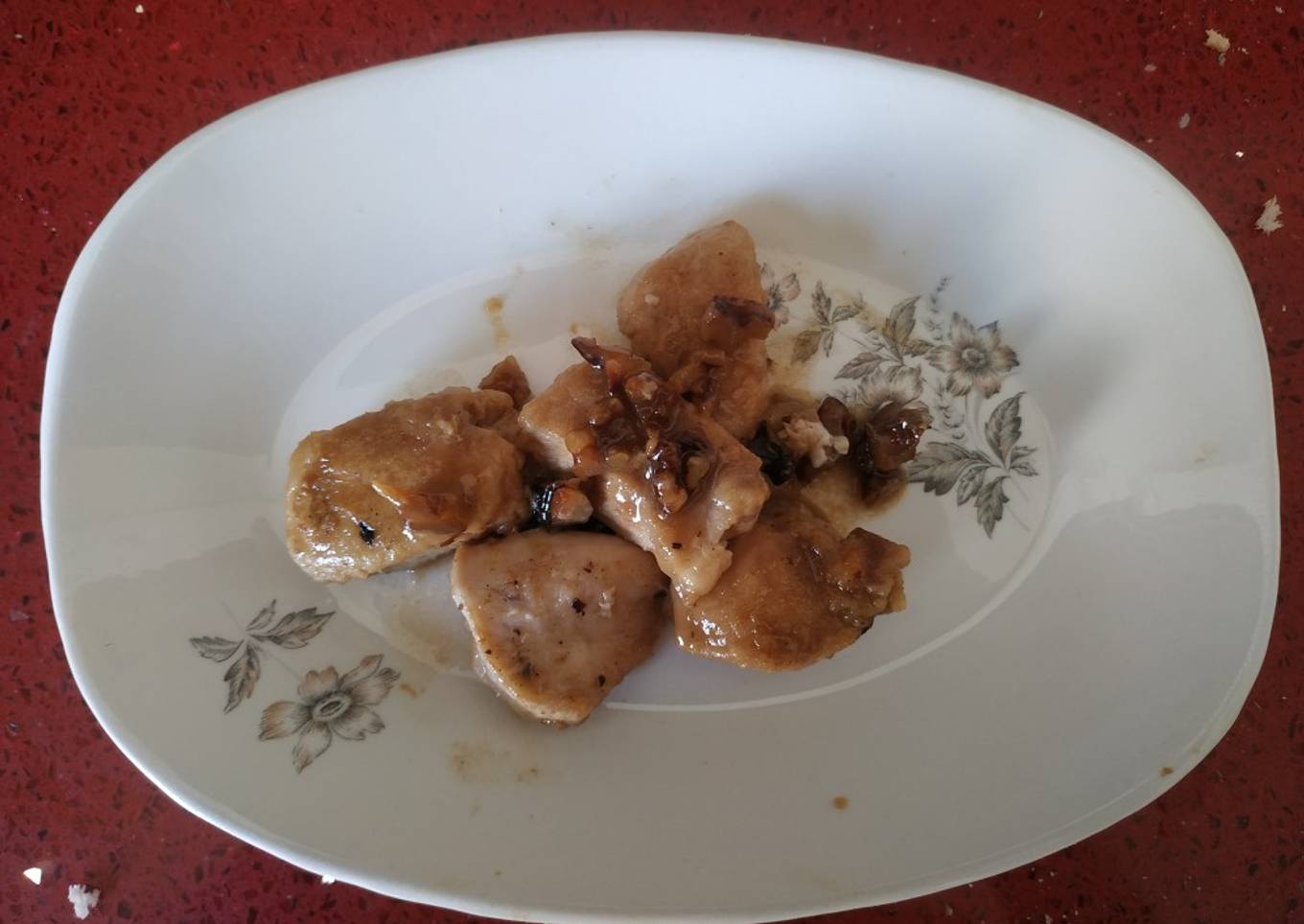 - Quitas las nueces de la sartén y pones el pollo para que se fría, lo dejas unos 5 minutos