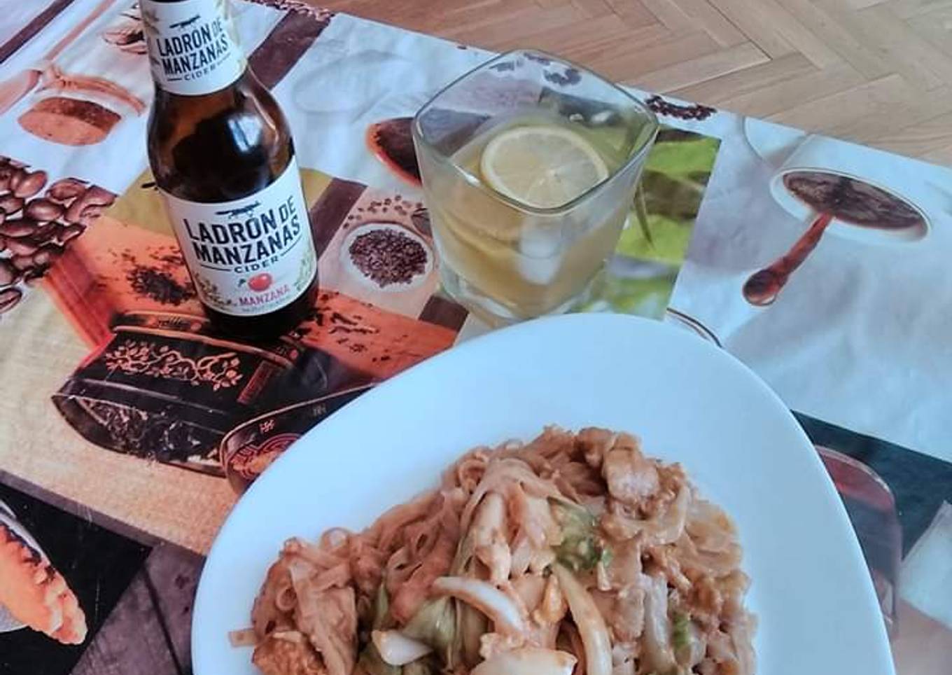 - En otra olla, ponemos a cocer nuestros tallarines de arroz unos 2/3 minutos desde que rompe a hervir el agua (recomiedo soltar la pasta con agua fria despues de cocer)