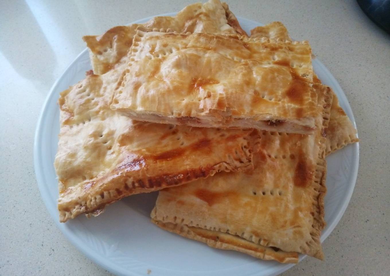 - Extiende la masa de empanada, ponle una capa de fiambre, encima una de tranchetes y dátiles picaditos