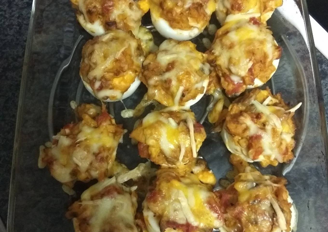 Steps to make to make Huevos rellenos de pollo y champiñones