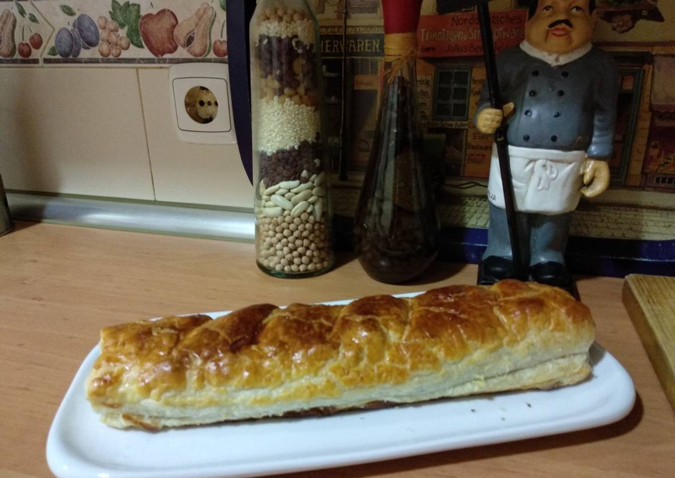 Aunque le he puesto ese nombre, no es realmente un pan porque la masa es de hojaldre, pero así jugamos un poco con el aspecto y la presentación del plato.