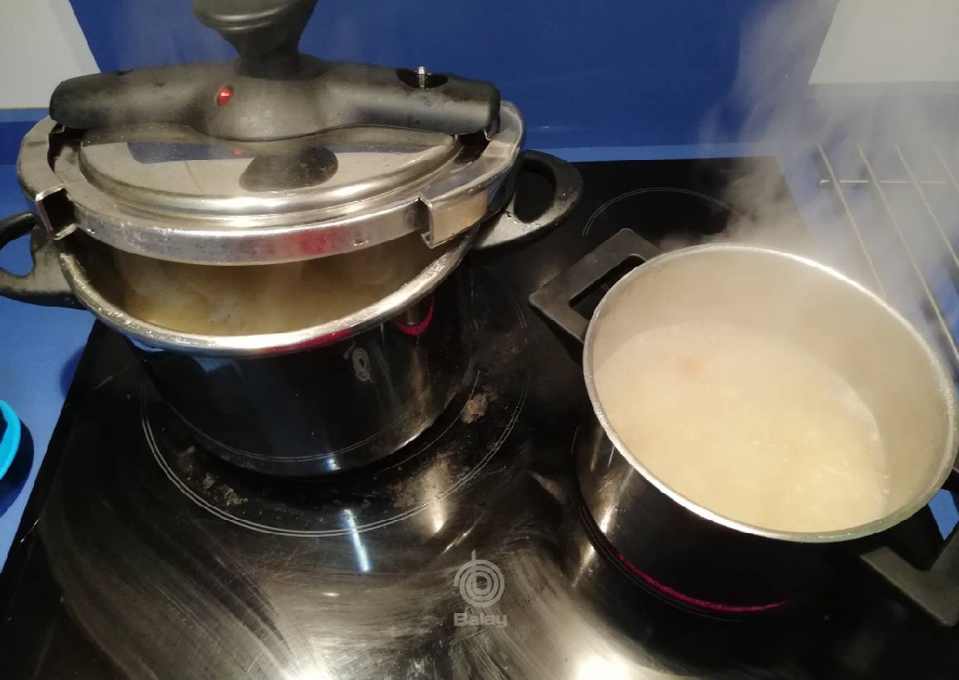 - Encendemos el fuego, yo suelo ponerlo fuerte dos horas y añadiendo agua si se consume mucha.