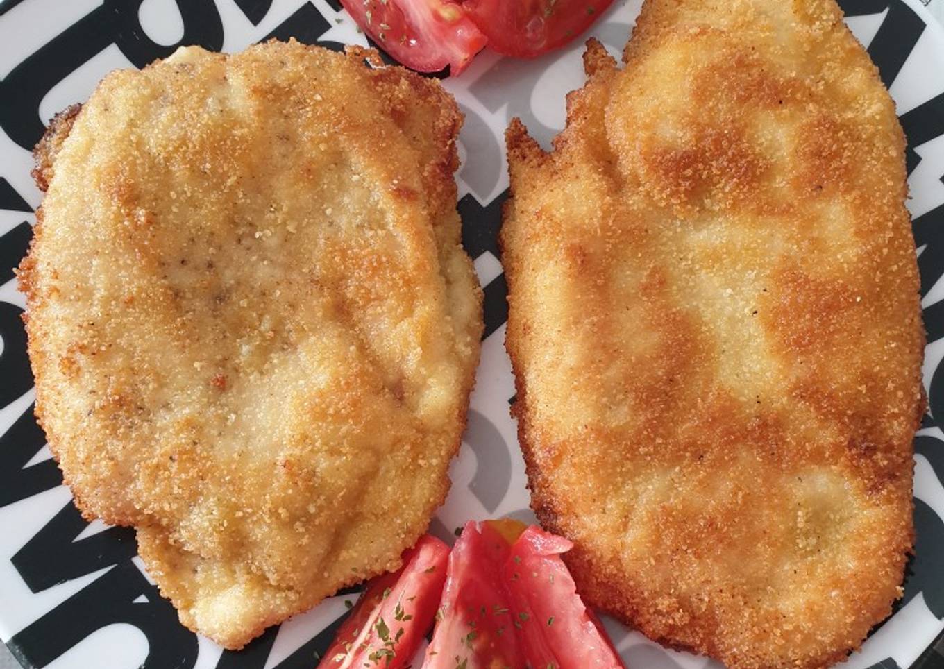 - Rebozamos las pechugas en huevo batido, escurrimos el exceso de huevo y luego lo pasamos por pan rallado. Si queremos podemos mezclar el pan rallado con perejil picado y ajo en polvo para que tenga otro sabor