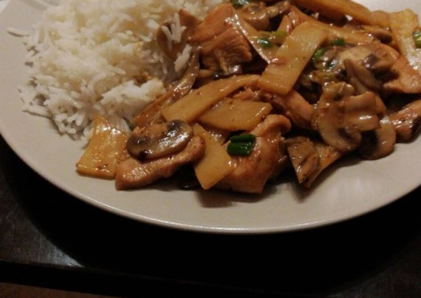 Pollo con bambú y setas