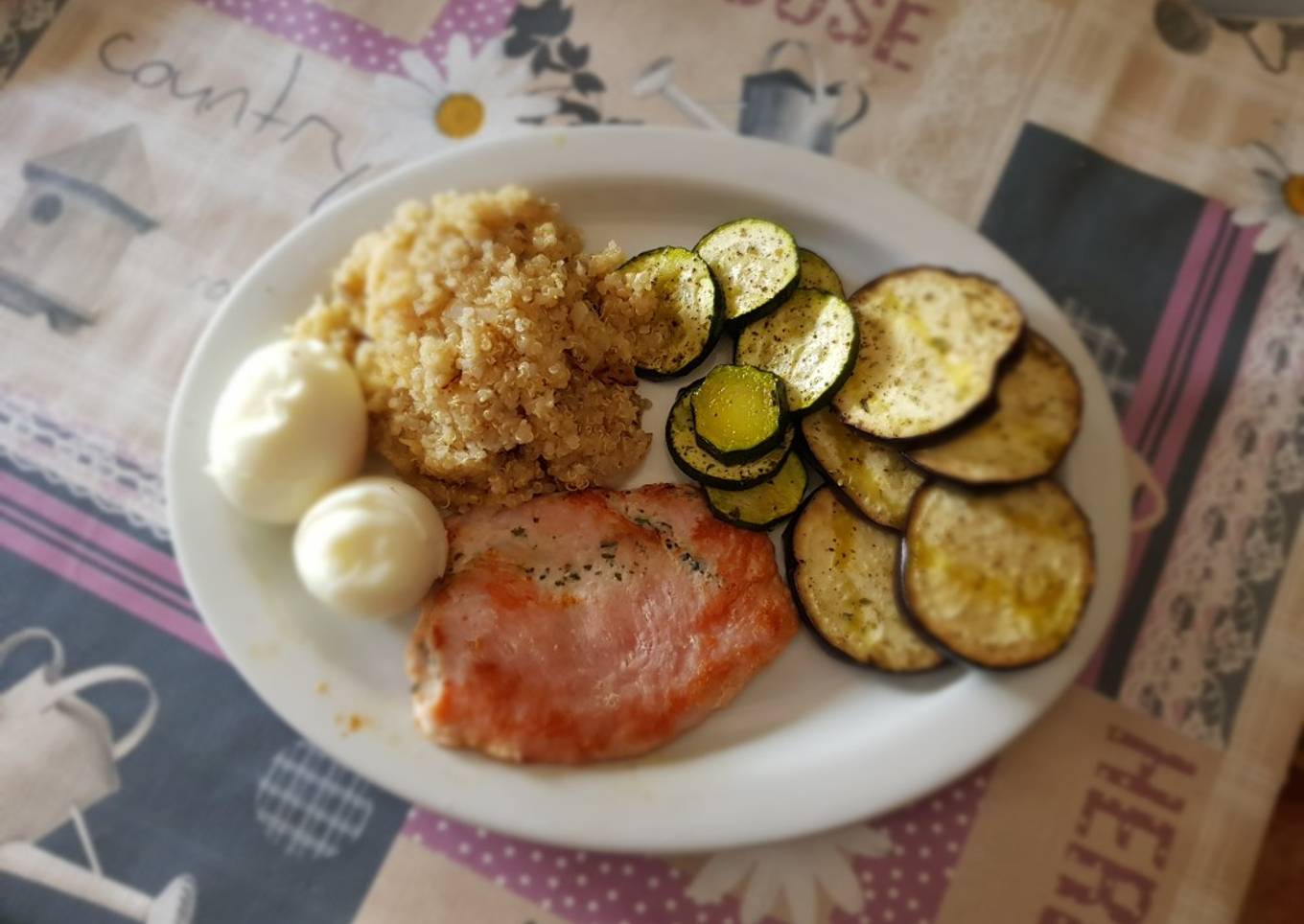- Pones el plato con todo cocinado y ya está. Sencillo y sano. Aquí está la foto.. y todo sabe tan rico.🤤 ¡¡Qué felicidad!!🥰