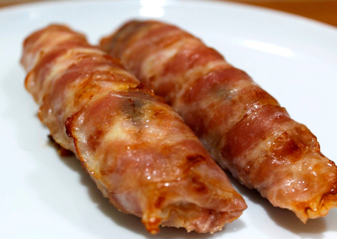 - Cerraremos la pechuga y después plegaremos los lados para que no salga el queso y cerraremos enrollando con el bacon para ponerlo dentro de papillote (lo que llamamos papel de albal o papel de plata), pondremos los rollos separados unos de otros dentro de la papillote, y lo pondremos encima de la bandeja para horno.