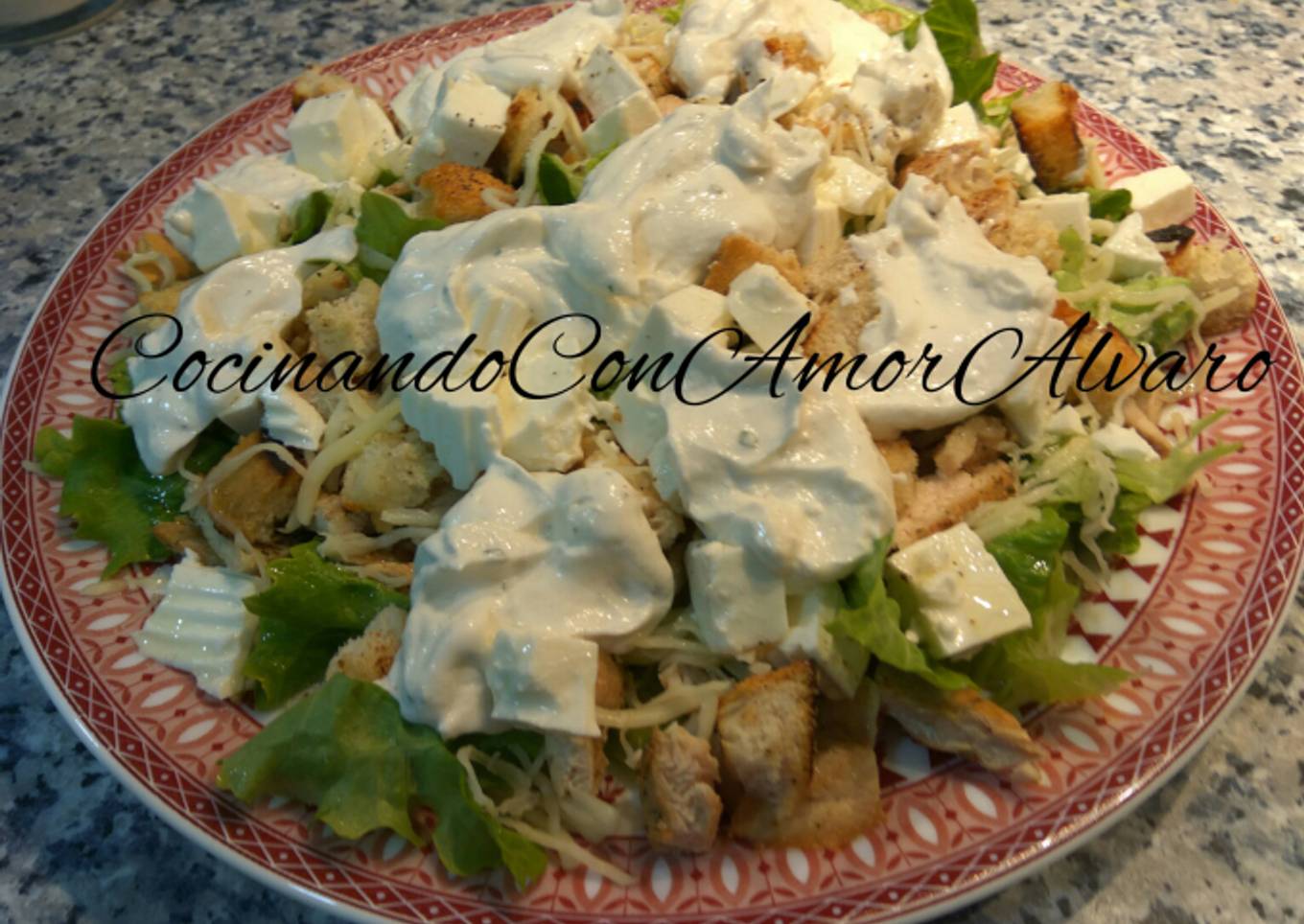 - Yo la emplaté en una plato, me gusta más. Vosotros como mejor veáis. Aquí el enlace de la Salsa https://cocinandoconamorconalvaro.wordpress.com/2017/01/25/salsa-cesar/?preview=true